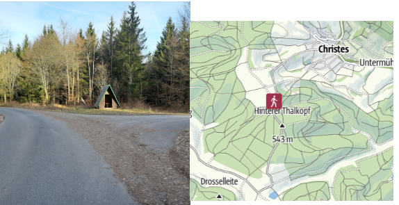 Die Schutzhütte“Hinterer Thalkopf“ ist in einem guten Zustand, allerdings fehlt hier ein Wegweiser. an dieser Kreuzung kann es durchaus zu Irritationen kommen.